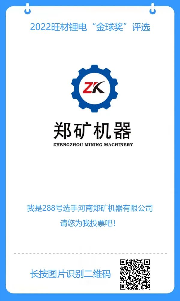 “動(dòng)力電池行業(yè)奧斯卡”2022旺材鋰電“金球獎(jiǎng)”評(píng)選活動(dòng)正在火熱進(jìn)展中,旨在由業(yè)界共同推薦、評(píng)選2022年行業(yè)中具有公信力的產(chǎn)品和企業(yè)品牌,以達(dá)到激勵(lì)行業(yè)技術(shù)創(chuàng)新的目的。評(píng)審時(shí)間為11月1日-11月28日;最終獲獎(jiǎng)名單將在11月28日晚舉行的2022旺材鋰電金球獎(jiǎng)?lì)C獎(jiǎng)典禮上隆重揭曉。希望投出您寶貴的一票,讓鄭礦機(jī)器能夠脫穎而出!